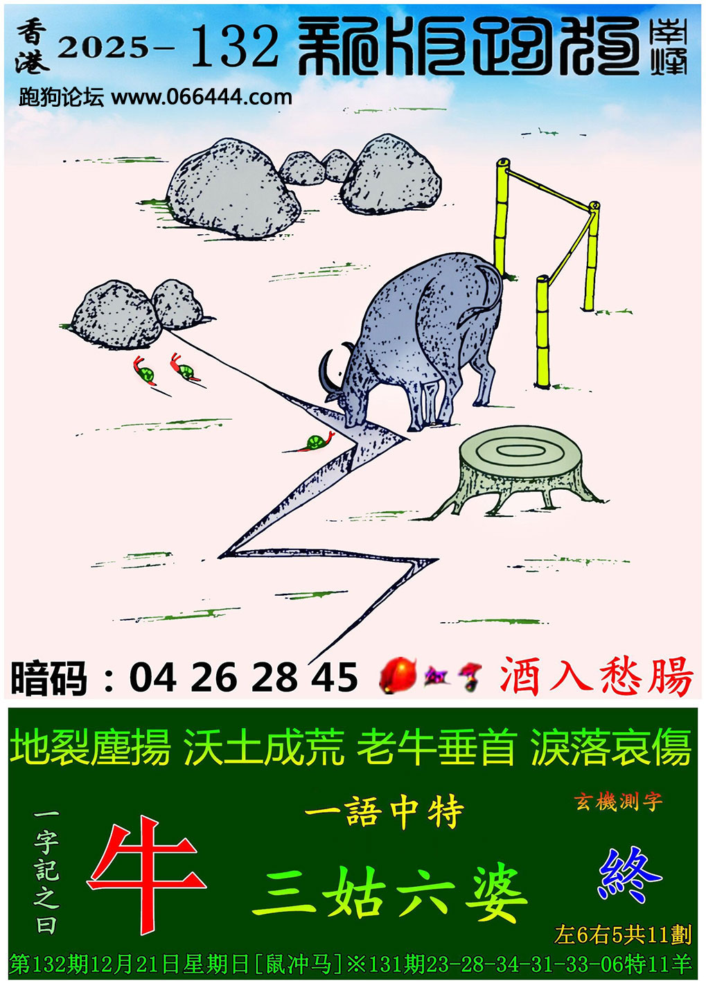 132期六合皇信箱红字【酒入愁腸】《暗码:04 26 28 45》开