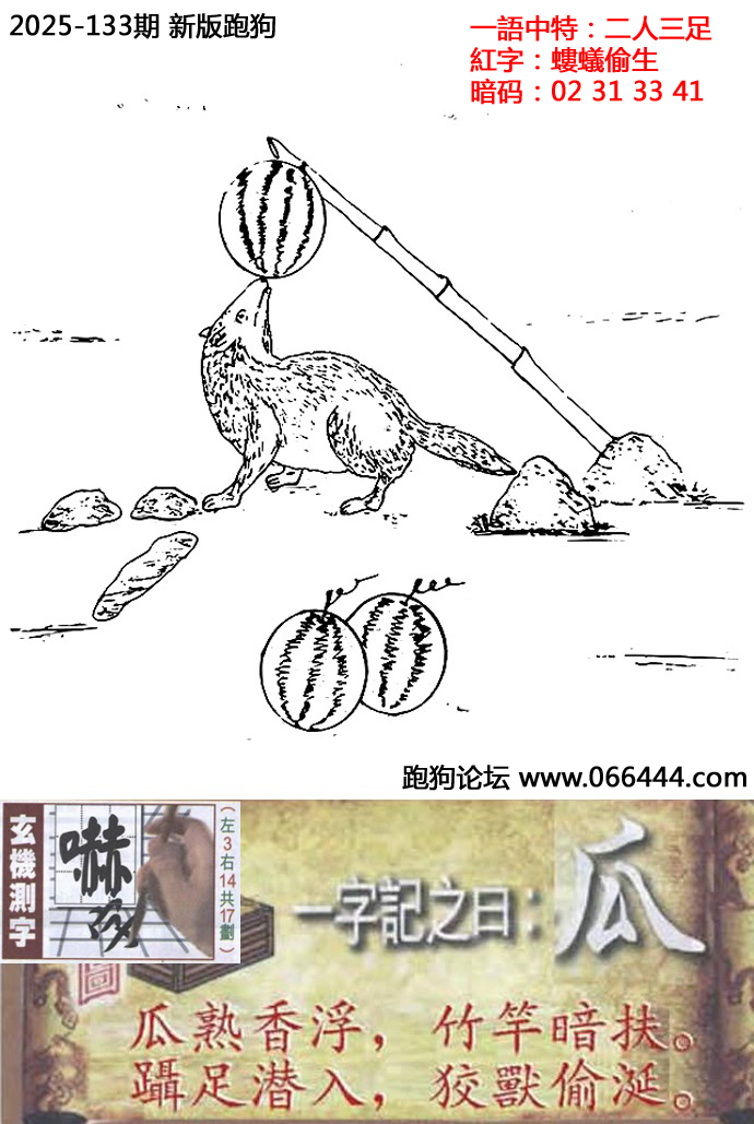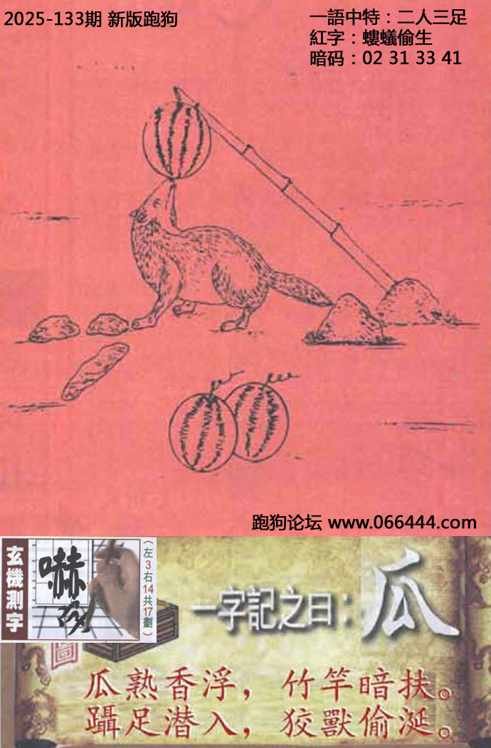 058期六合皇信箱红字【暴跳如雷】《暗码:02 06 17 23》开17牛